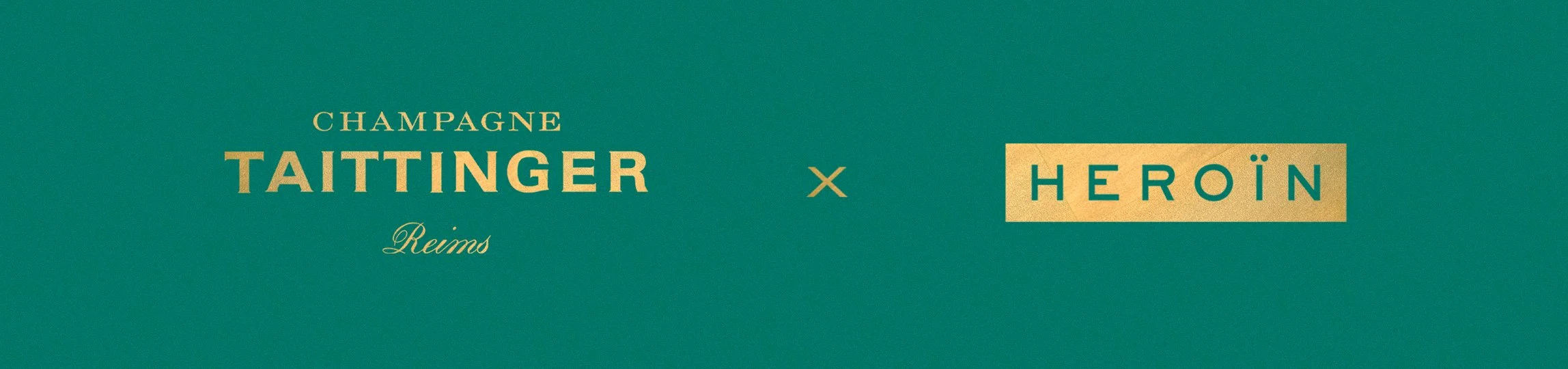 Cette collection prend comme base un beige calcaire en référence aux chemins de vignes qui parcourent les vignobles. Différents verts qui montrent les différents cépages de la maison Taittinger et amènent ce côté très moderne et graphique. Pour finir, des lignes et détails dorés sont là pour souligner l’exception et le savoir faire des deux marques que sont Heroïn et Taittinger.